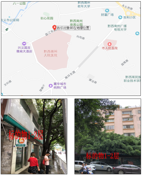 1、標(biāo)的物位于興義市盤江東路49號A幢第1號1-2層的綜合房地產(chǎn),標(biāo)的物建成于2005年,南面臨盤江東路,其余三面均臨多層建筑樓棟?;旌辖Y(jié)構(gòu),水電、生活燃?xì)狻⑾赖仍O(shè)施齊全。使用正常,維護(hù)狀況較好,普通裝修,地面鋪地磚,墻面及頂面刮瓷粉刷乳膠漆,鋁合金窗,防盜門、卷簾門、木門。