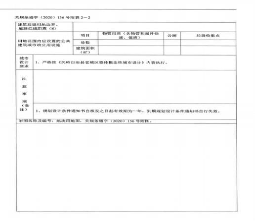(四)買受人必須按照關(guān)嶺布依族苗族自治縣自然資源局出具的關(guān)規(guī)條通字(2020)136號(hào)《規(guī)劃設(shè)計(jì)條件通知書》中的規(guī)定和要求進(jìn)行建設(shè)。