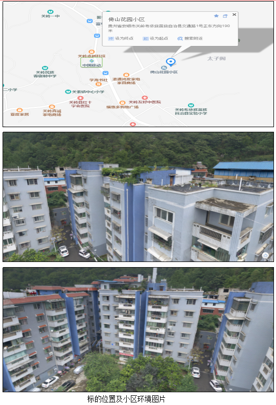 標(biāo)的位于關(guān)嶺縣關(guān)索鎮(zhèn)棗園路倚山花園,房屋總樓層7層,建成于2006年,交通生活便利,有多條公交線路經(jīng)過(guò),周邊生活、醫(yī)療、教育、銀行等配套一應(yīng)俱全;房屋室內(nèi)現(xiàn)狀為毛坯,水電配套設(shè)施基本完善;房屋用途:住宅;土地用途:住宅;土地性質(zhì):國(guó)有出讓;房屋結(jié)構(gòu):混合結(jié)構(gòu)。