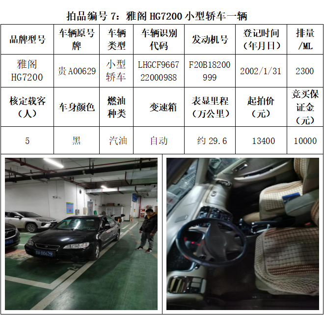 受委托,本公司定于2021年3月26日(星期五)下午14:30時,在貴陽市中華南路20號新大陸數(shù)碼廣場10樓D座拍賣廳公開拍賣以下車輛:普拉多越野車1輛、超級維特拉越野車1輛、別克商務(wù)旅行車1輛、輝騰轎車1輛、途勝越野車1輛、雅閣轎車2輛、奧迪轎車1輛,長城牌小型越野客車1輛,共計9輛車。