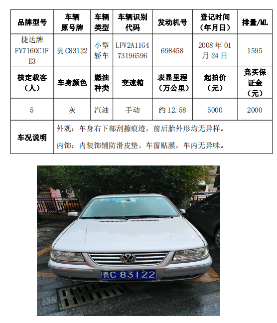 本次拍賣會(huì)的拍賣標(biāo)的(拍品編號(hào)1-5共計(jì)5輛車),分別為桑塔納牌、捷達(dá)牌、昊銳牌、獵豹牌,為打包整體拍賣,不作拆分,整體起拍價(jià):77200元,且只對(duì)標(biāo)的現(xiàn)狀進(jìn)行拍賣,不作任何質(zhì)量擔(dān)保。