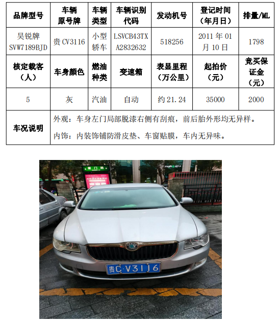 拍品編號(hào)4:昊銳牌SVW7189BJD小型轎車一輛