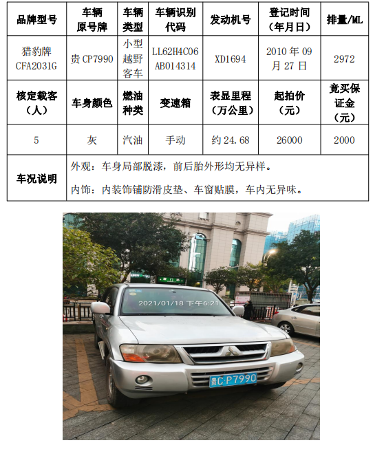 拍品編號(hào)5:獵豹牌CFA2031G小型越野客車一輛