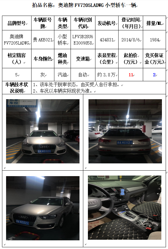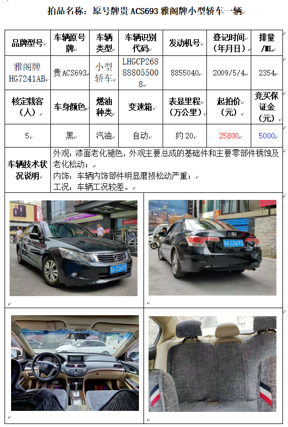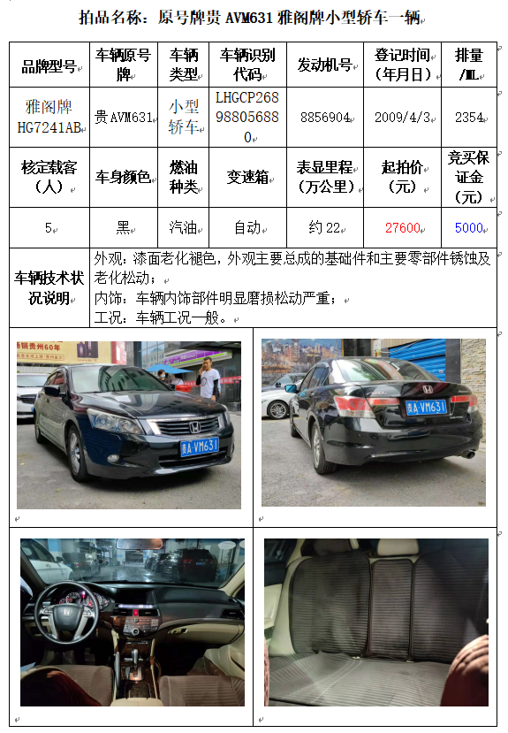受委托,本公司定于2021年10月11日(星期一)下午14:30時,在貴陽市中華南路20號新大陸數(shù)碼廣場10樓D座拍賣廳公開拍賣以下車輛: