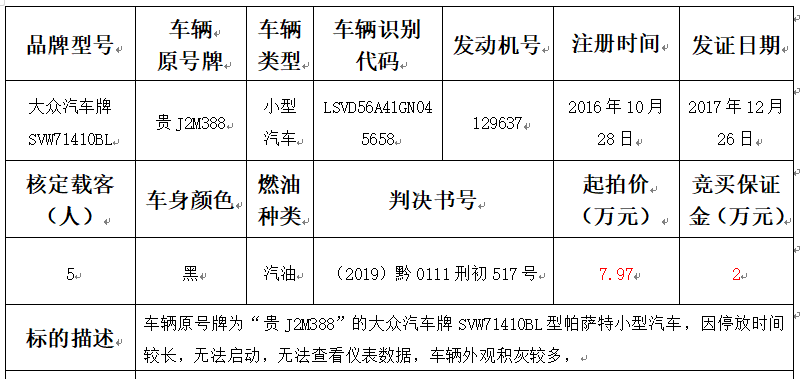 拍品編號2:大眾汽車牌SVW71410BL型帕薩特小型汽車一輛