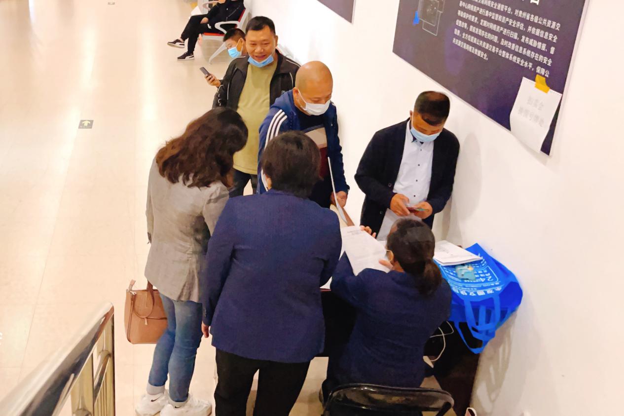 10月13日,翔泓拍賣公司工作人員提前入場(chǎng)進(jìn)行會(huì)場(chǎng)布置,在座椅上張貼序號(hào),入場(chǎng)人員按照防疫預(yù)案要求查驗(yàn)“三碼”并依次登記、測(cè)量體溫,提醒競(jìng)買人佩戴口罩、對(duì)號(hào)并隔位入座。