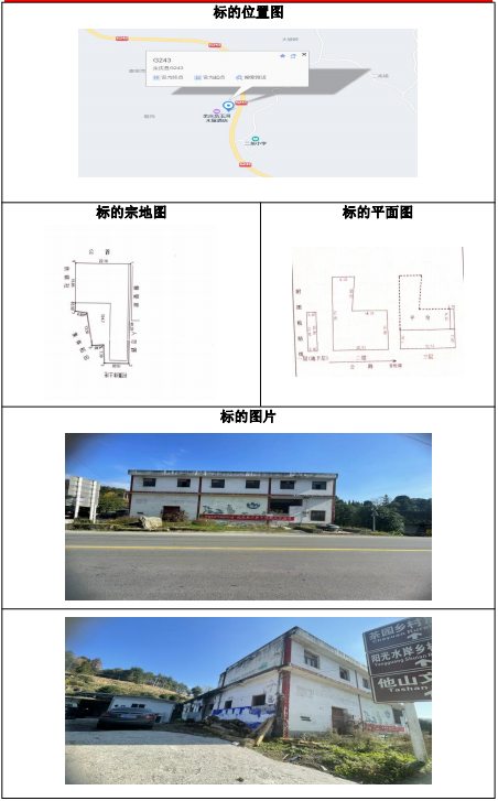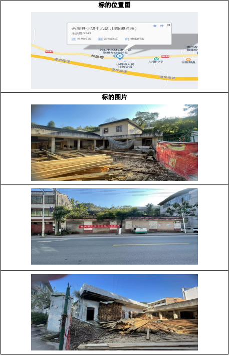 該標(biāo)的位于余慶縣白泥鎮(zhèn)小腮街上,建筑面積:約1500㎡,土地面積:約1216.5㎡,資產(chǎn)無產(chǎn)權(quán)證。