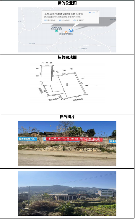 該標的位于余慶縣構皮灘鎮(zhèn)甕腳村,證載土地面積:1207㎡,土地使用權性質:劃拔,土地證載用途:煙葉收購,土地證號:余國用(2007)第887號。