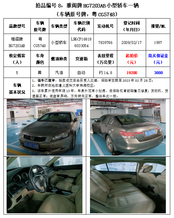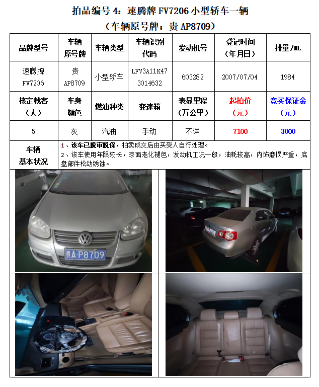 七、報(bào)名需交納競(jìng)買保證金(車輛3000元、房產(chǎn)20萬(wàn)元)資料服務(wù)費(fèi)300元/套(資料服務(wù)費(fèi)不退)。意向競(jìng)買人應(yīng)在規(guī)定報(bào)名時(shí)間內(nèi)交納競(jìng)買保證金、資料服務(wù)費(fèi)到我公司指定銀行賬戶,取得意向競(jìng)買資格。