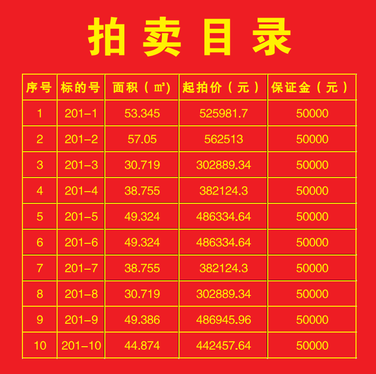 1、安順市西秀區(qū)建軍路4號順大廣源公寓2幢2-6單元2層201-1號至201-10號共計10個商業(yè)用房,位于地面1層(對面為安順市第二幼兒園),建筑面積30㎡—57㎡不等,起拍價:30.28萬元—52.59萬元不等,保證金:每個標(biāo)的5萬元整(標(biāo)的物詳情以拍賣資料為準(zhǔn))。